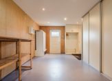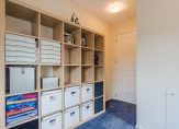 Alle Velux-ramen zijn uitgerust met rolgordijnen en buitenzonwering. Achter schuifdeuren onder de dakschuinte bevinden zich praktische bergruimtes.