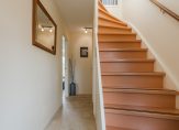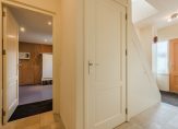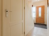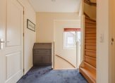 Entree met meterkast (moderne 3-fase installatie, 11 groepen, aardlekbeveiliging en patchpaneel), toiletruimte met wandcloset en fontein en trapopgang naar de eerste verdieping. Vanuit de hal is er toegang tot zowel de woonkamer als de (voormalige) garage/bijkeuken.