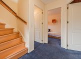 Overloop met toegang tot drie ruime slaapkamers en de badkamer.