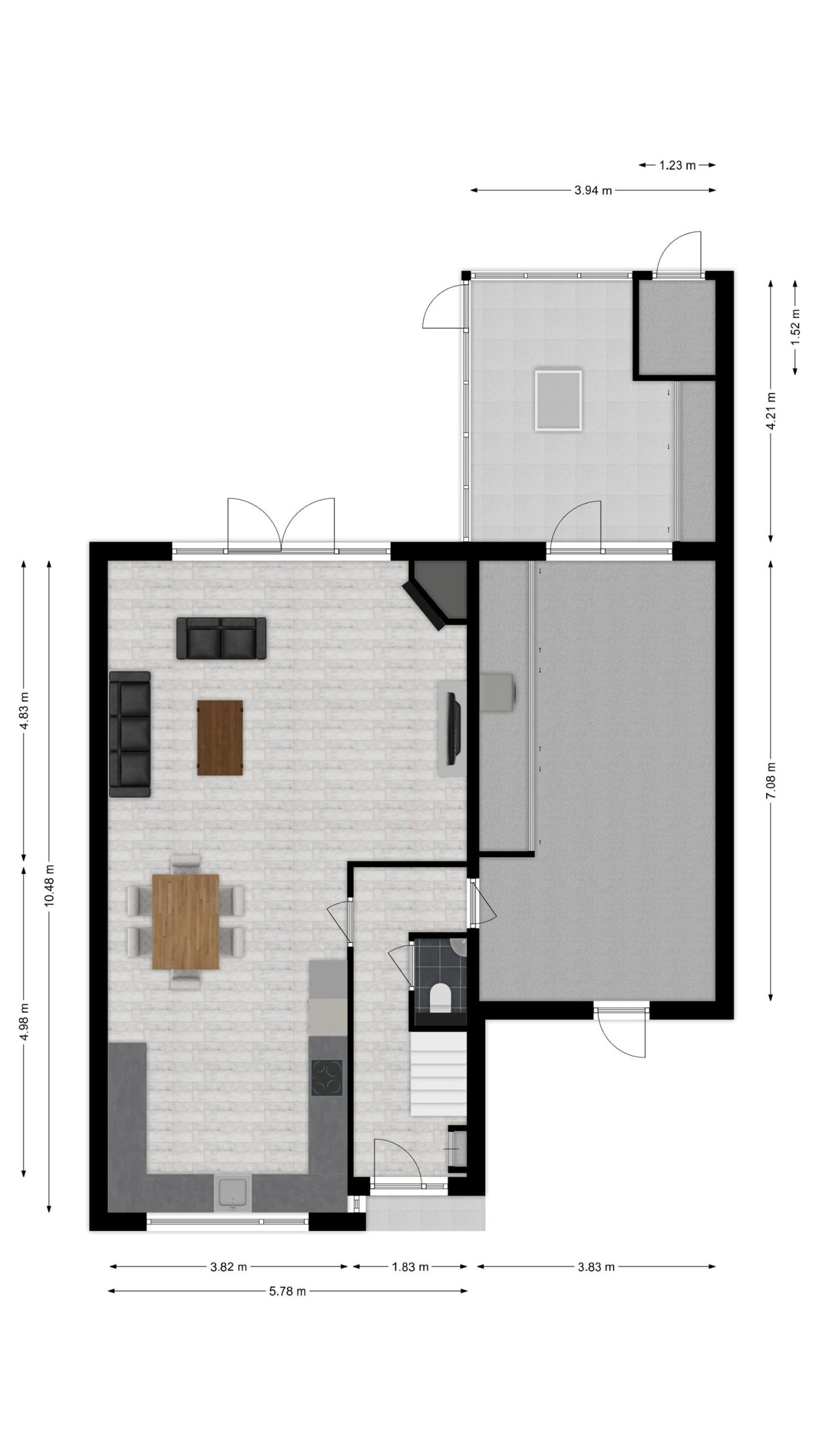 * Begane grond met plavuizen vloer en vloerverwarming