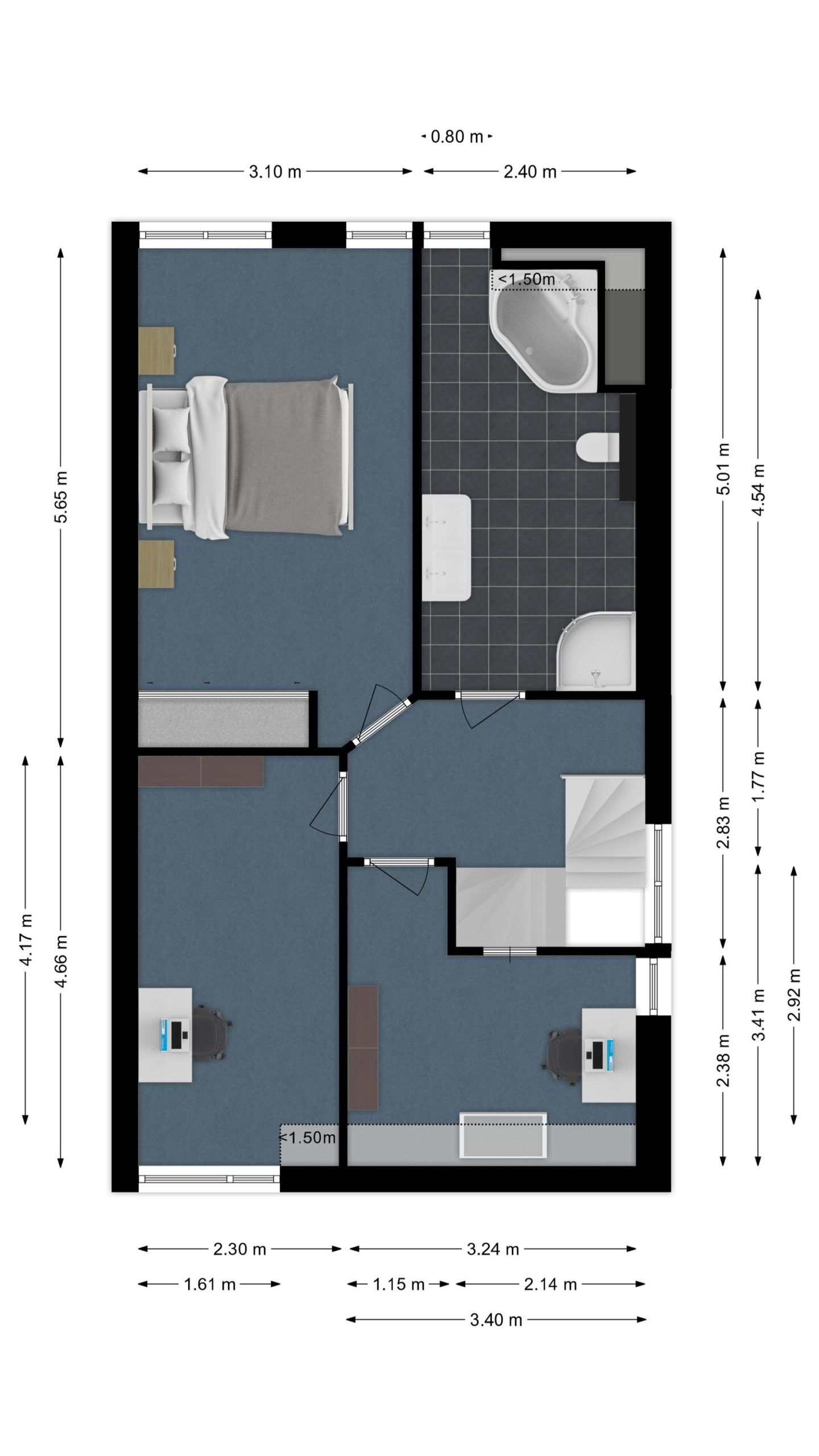 De grootste slaapkamer ligt aan de achterzijde en beschikt over een dakkapel en een op maat gemaakte schuifkast.