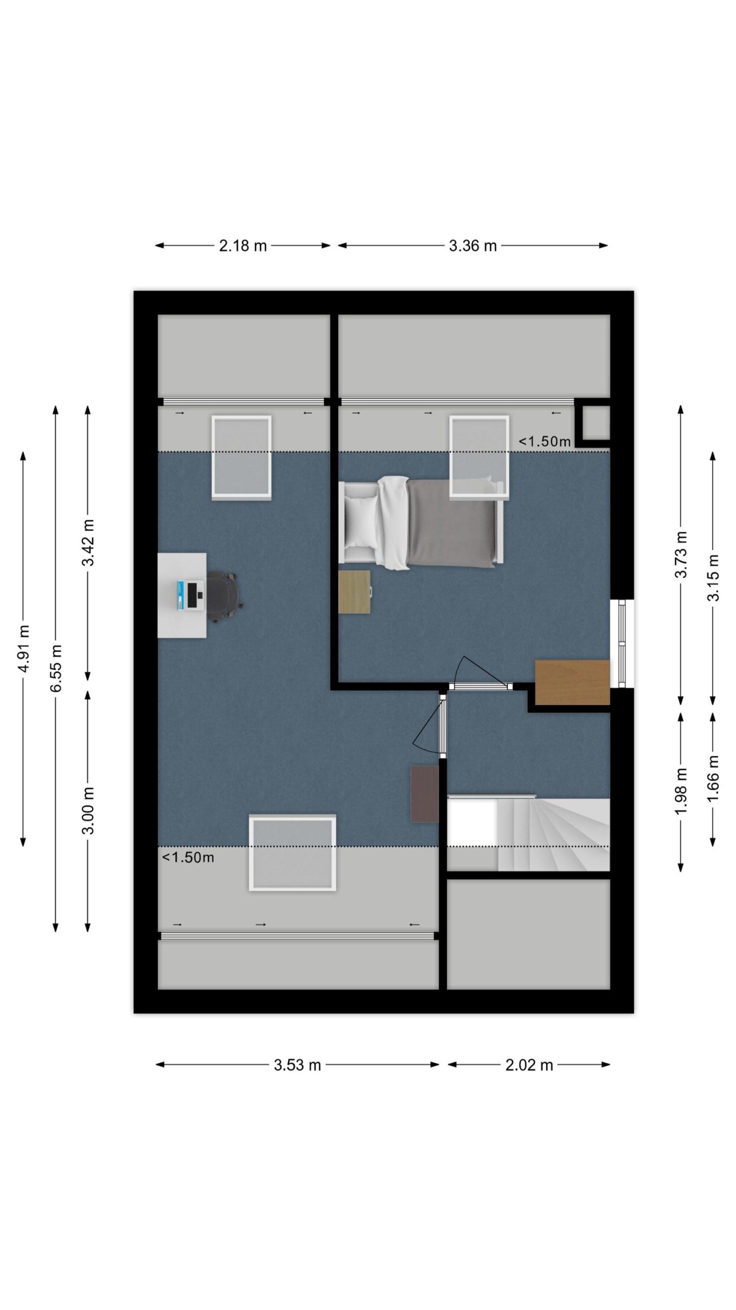 Slaapkamer vier heeft een Velux-dakraam en een kiep-/kantelraam in de zijgevel.