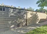 Deze tuin biedt een prettige basis met sierbestrating en vaste beplanting, maar vooral veel mogelijkheden om naar eigen smaak in te richten. Dankzij de aanwezigheid van zowel een houten als een stenen berging is er voldoende ruimte voor fietsen, tuingereedschap of hobbyspullen. Aan de achterzijde heeft u een poort naar de achterom en uitzicht op het groen van de bomen, wat zorgt voor een vrij en ruimtelijk gevoel.