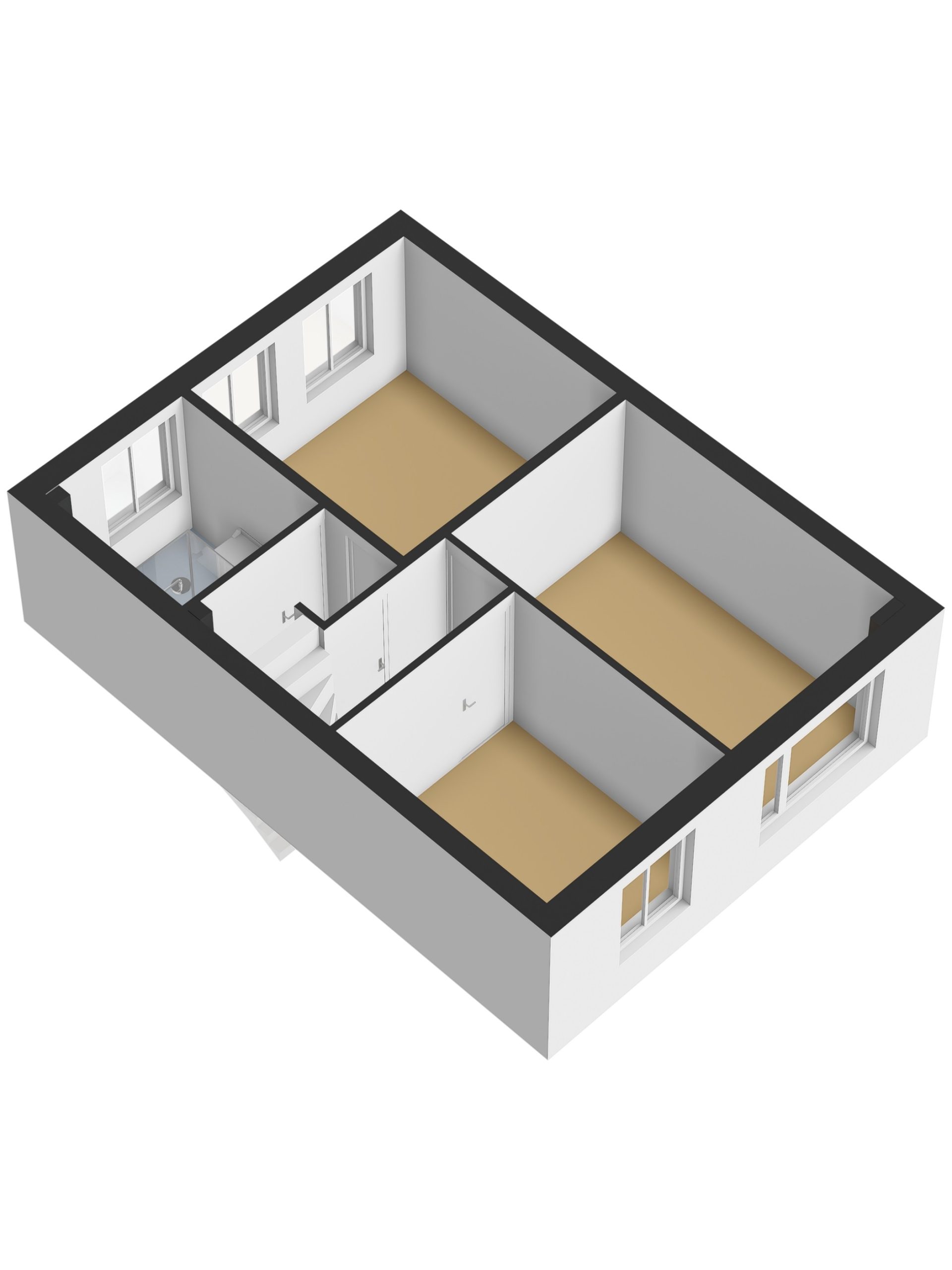 Via de overloop bereikt u drie slaapkamers en een ruime badkamer. De badkamer is voorzien van een toilet, wastafel met meubel en een douche. De royale ruimte maakt het eenvoudig om hier een moderne badkamer te realiseren die aansluit bij uw woonwensen.