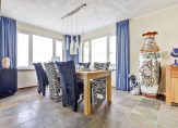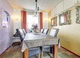 De entree van de woning biedt toegang tot de hal met leistenen vloer, de trapopgang, meterkast en het toilet. Vanuit de hal komt u in de ruime en lichte living, die door de royale afmetingen talloze mogelijkheden biedt om de ruimte naar eigen wens in te richten. De woonkamer eveneens met een leistenen vloer is voorzien van een gashaard, die zorgt voor extra sfeer en warmte. Vanuit de living bereikt u de half open keuken, welke is uitgerust met diverse inbouwapparatuur, waaronder een vaatwasser, koelkast, oven en een 5-pits gasfornuis. Eveneens heeft u vanuit de keuken toegang tot de kelderkast, ideaal voor extra opbergruimte. De keuken loopt over in de eetkamer, waar een speelse doorkijk zorgt voor een mooi zicht op de living. Vanuit de keuken heeft u toegang tot de achtertuin.