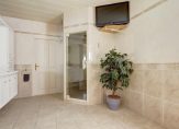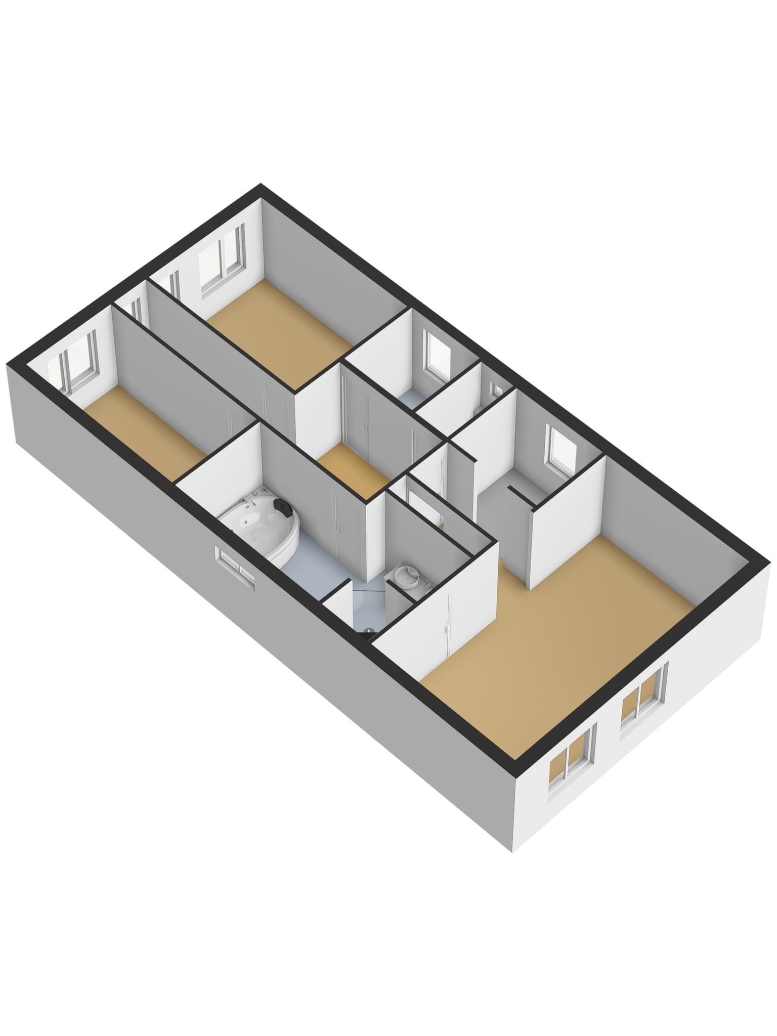 De overloop geeft u toegang tot 3 slaapkamers, de wasruimte met de aansluitingen voor de wasapparatuur, een apart toilet en de badkamer. De ruime en sfeervolle badkamer is perfect om te ontspannen. Voorzien van een stoomcabine, een hartvormige whirlpool en een dubbele wastafel met meubel. Een heerlijke plek waar je echt even kunt bijkomen.