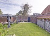 Aan de woning bevindt zich een aangebouwde stenen berging van circa 9 m², waarin de cv-ketel is geplaatst, ideaal voor extra bergruimte of als hobbyruimte. Direct aansluitend ligt een gezellig terras, een fijne plek om buiten te zitten en te genieten van de rust. Via een klein afstapje bereikt u het gazon, dat samen met de diverse vaste beplanting zorgt voor een groene en sfeervolle tuin. Achterin bevindt zich de garage van circa 25 m², die zowel vanuit de tuin als via de zijkant van de woning toegankelijk is.
