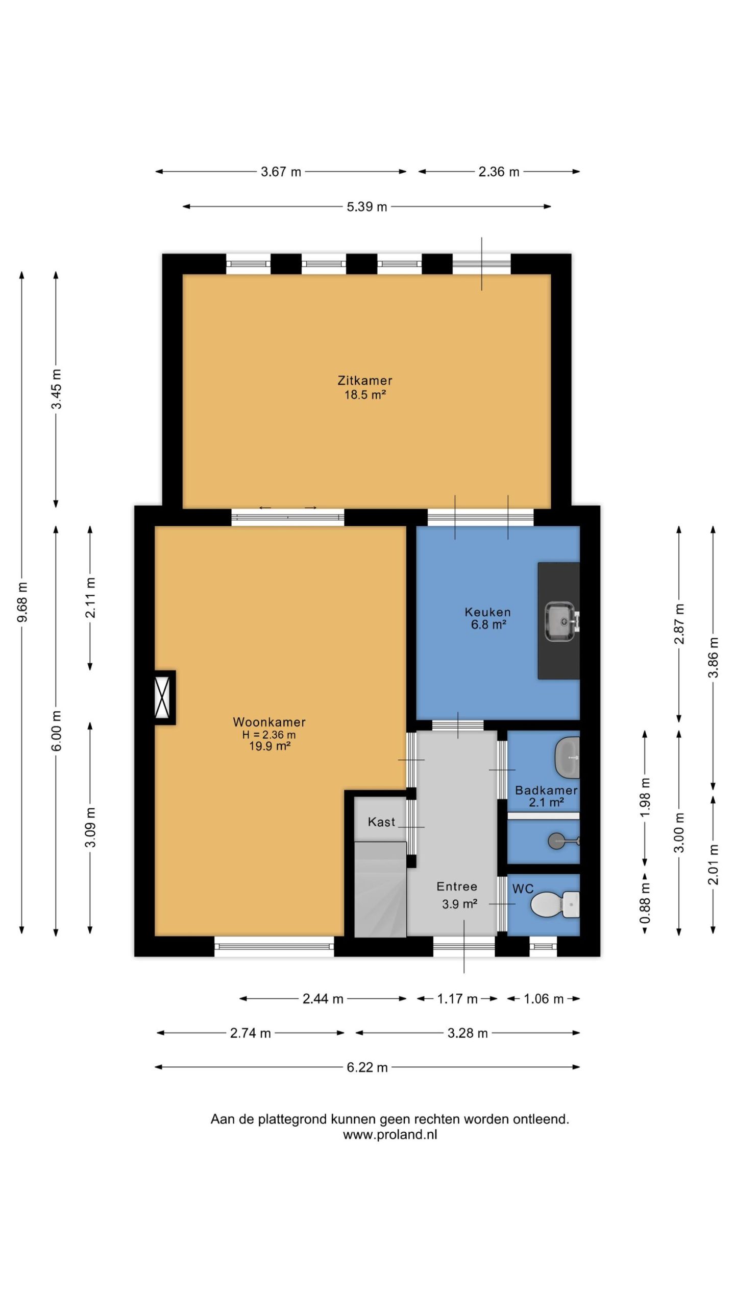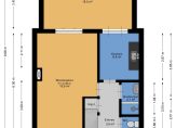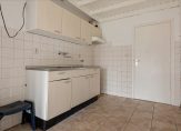 U bereikt de woning via de ruime voortuin, waarna u binnenkomt in de hal. Hier vindt u een verdiepte kelderkast met meterkast, een toilet en een douchegelegenheid met wastafel. Vanuit de hal heeft u toegang tot de woonkamer, die is voorzien van een uitbouw met rolluiken en een loopdeur naar de achtertuin, waardoor veel lichtinval en een prettige verbinding met buiten ontstaat. De open keuken beschikt over een eenvoudig keukenblok met afzuigkap en biedt voldoende ruimte om naar eigen wens uit te breiden en een moderne leefkeuken te creëren.