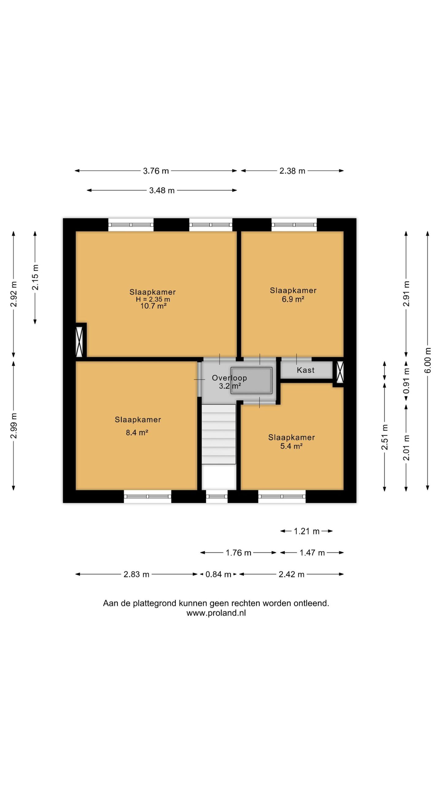 Slaapkamer IV is circa 2,92 x 3,76 m.