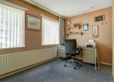 De werkkamer is circa 2,46 x 2,06 m en bevindt zich aan de voorzijde van de woning. Deze kamer is voorzien van een balkon en de vaste trap naar zolder;