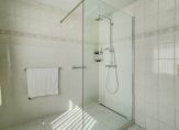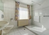 De overloop geeft u toegang tot 2 slaapkamers, een werkkamer en een badkamer. De ruime badkamer is in zijn geheel betegeld en beschikt over een inloopdouche, wastafel en een toilet. Op de overloop is een vaste kast gesitueerd.