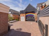 De voortuin is fleurig aangelegd met bloemen en planten, terwijl de achtertuin onderhoudsvriendelijk is aangelegd met bloembakken. De lange oprit biedt ruime parkeergelegenheid en leidt naar de grote schuur en kantoorruimte, perfect voor werk aan huis of hobby’s.