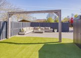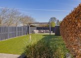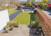 In de diepe achtertuin kun je genieten van de zon, spelen met de kinderen of gewoon heerlijk relaxen en onthaasten van de drukte van de dag. Tevens is er een groot terras gerealiseerd en op eigen terrein is er parkeergelegenheid voor wel vier auto’s.