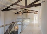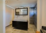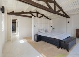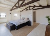 Een fraaie houten trap leidt naar de verdieping waar een overloop is met een wasruimte, 5 ruime slaapkamers en 2 badkamers waarvan de ouderslaapkamer zijn eigen badkamer heeft en een inloopkast. De balkenplafonds zorgen voor extra sfeer in deze ruime verdieping.