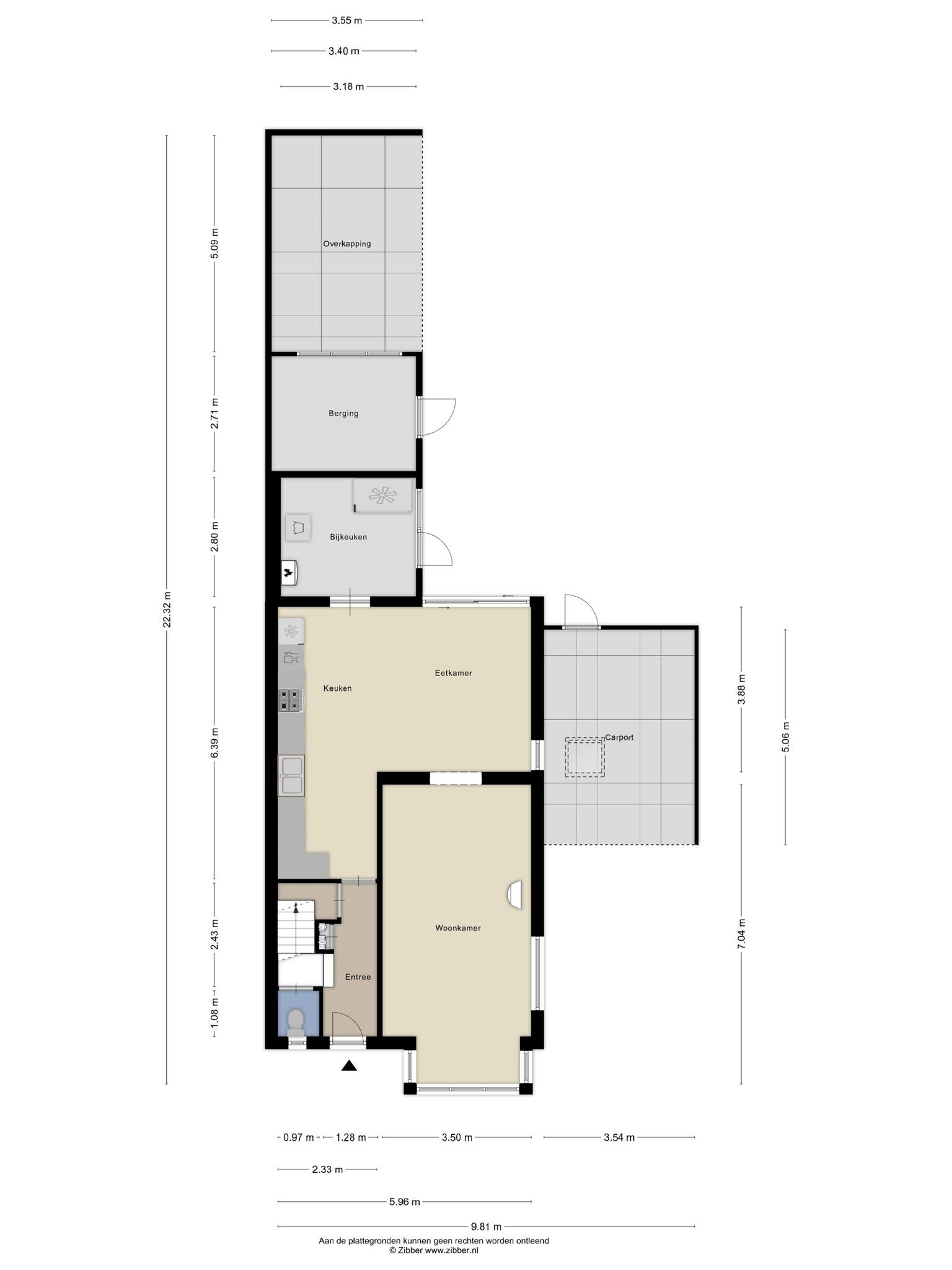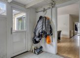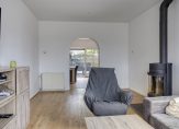 Entree met meterkast, toiletruimte, trapopgang naar de 1e verdieping en een handige provisiekelder. De woonkamer van ca. 24 m² is licht en voorzien van erker en houtkachel. In de uitbouw is de royale woonkeuken van ca. 29 m² met enig inbouwapparatuur en schuifpui naar de tuin en deur naar de bijkeuken met witgoedaansluitingen.
