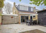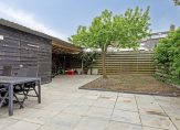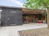 De onderhoudsvriendelijke achtertuin ligt op het zuidwesten. Hierdoor kun je lang genieten van de zon. Aan de houten berging is een overkapping waar je heerlijk beschut kunt zitten. De oprit biedt plek voor zeker 3 auto’s.