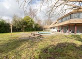De villa staat op een riant perceel van bijna 2.500 m² met een prachtige, groene tuin. De royale achtertuin ligt op het zuiden en biedt volledige privacy. Een plek om volop te genieten van de zonnige dagen op het terras, bij het zwembad of onder de sfeervolle en royale veranda met buitenhaard.