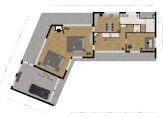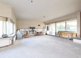Ruime ontvangsthal van 25 m² met meterkast, garderoberuimte, net toilet en toegang tot de woonkamer/kantoor/slaapkamer van ca. 21 m². De royale en lichte woonkamer van ca. 75 m² is in afbouwfase en voorzien van 2 schuifpuien naar het terras en de tuin. Vanuit de woonkamer kom je in de woonkeuken van ca. 20 m², welke is voorzien van nette inrichting en inbouwapparatuur en deur naar de bijkeuken van ca. 11 m². De royale dubbele garage van 43 m² is van buitenaf bereikbaar.