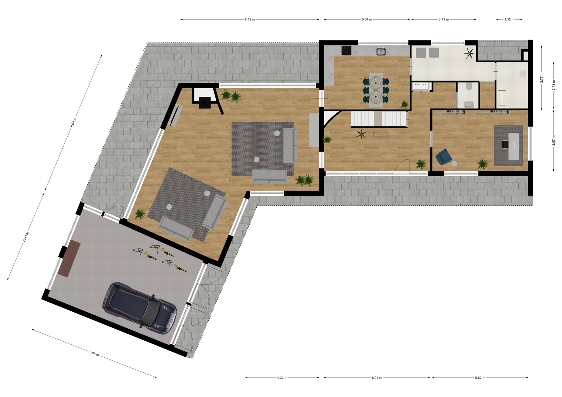 Hal met bergruimte en een royale multifunctionele ruimte van ca. 44 m²; een eigen bioscoop, wellness-/fitnessruimte of bar met pooltafel, veel is hier mogelijk!