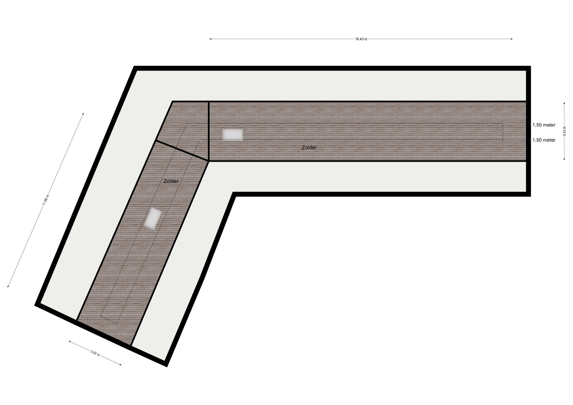 Royale zolderruimte in meerdere delen, bereikbaar via vlizotrappen.