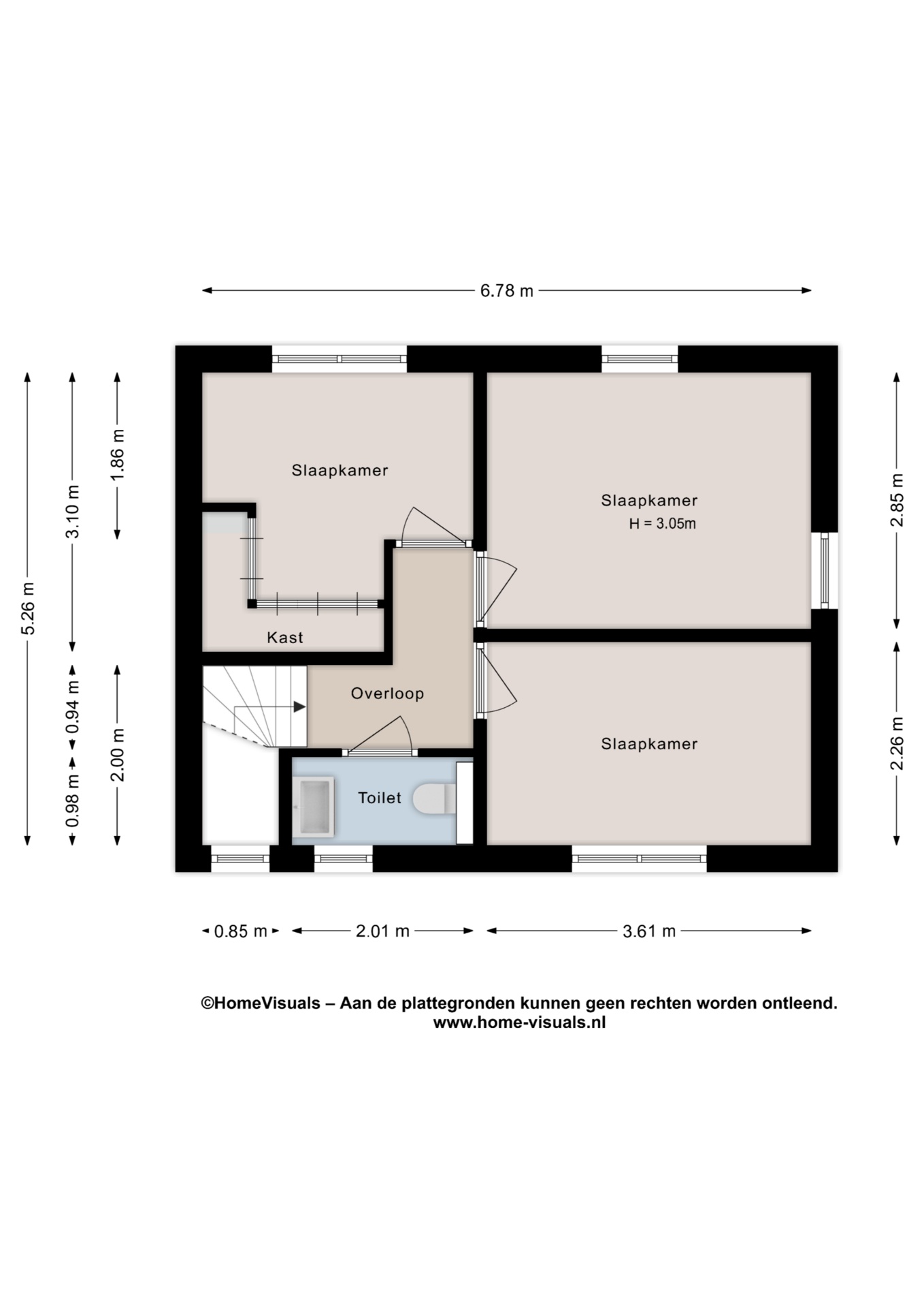 Overloop met toegang tot drie ruime slaapkamers en separaat toilet.