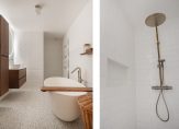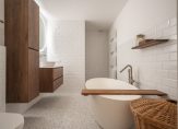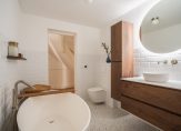 The centrally located bathroom is a highlight, featuring a large bathtub, walk-in rain shower, second WC, heated mirror, mechanical ventilation, underfloor heating and a designer towel radiator. The bathroom has been finished to a high standard with solid walnut X²O bathroom furniture and tasteful tiling.