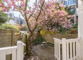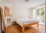 The master bedroom to the rear boasts an original mantel, ornate ceilings, and double doors with HR++ glass leading to a private terrace with steps down to the romantic city garden. This beautifully maintained garden offers rear access via a secure gate – perfect for bicycles, beach gear or surfboards.