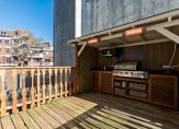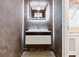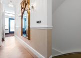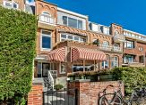 Through the front garden with luxury bluestone floor tiling and borde staircase, you reach the front door of the flat. The staircase gives access to the ground floor but, if desired, the basement can also be accessed via an external staircase. The entrance to the flat is half a floor above street level. The bright hallway (with panelling) gives access to the guest toilet, the bedrooms and the living room. The luxurious toilet is exceptionally spacious and equipped with a free-hanging toilet, illuminated mirror and vanity unit. The beautiful double doors with cut glass windows give access to the living room. This very spacious living room (broken rooms ensuite) with a generous seating area and dining table has beautiful ornamental ceilings. These ceilings are constructed in such a way ( free-hanging on springs) that noise and movement from the floor above can hardly be experienced. The beautiful fireplace with original mantelpiece, the herringbone floor, radiator casings, the natural stone window sills, everything is coordinated in a particularly tasteful manner. The luxurious extended open kitchen is located at the rear of the full-width house. This luxury kitchen is more than fully equipped and is a true paradise for real cooking enthusiasts. The white kitchen with thickened hardstone top is equipped with a cooking island with seating area, Quooker, 5 separate gas burners by Gaggenau (divided into 2-1-2), large swivelling extractor fan, built-in coffee machine, combi oven and combi microwave, wine fridge. fridge-freezer and a dishwasher. The door at the rear gives access to the terrace. Here you find the 2nd kitchen, a real outdoor kitchen in the beautiful canopy. This canopy includes a patio heater, Boretti cooker with hob and grill and a pizza oven. Of course, it does not lack a sink with hot and cold water. A lovely place to prepare beautiful dishes all year round. To the left and right of the terrace are beautiful electric skylights of the basement.