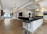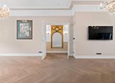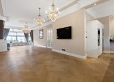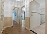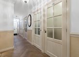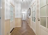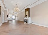 This very luxurious 5-room double ground floor flat has been renovated with great taste and care. Truly down to the smallest detail, the highest quality materials have been used. The spacious layout of the rooms contributes to a rich feeling, also thanks to the generous dimensions of the total living area of approx. 212m². Equipped with very many original style details from the construction period including richly ornamented ceilings, Beautiful panel doors, beautiful original fireplaces with fireplaces, an extremely beautiful traditional oak herringbone floor with ‘Wengé’ piping and custom-made radiator casings. Thanks to a lovely (private) front terrace of approx. 24 m² facing south and a rear terrace of 12 m² adjacent to the kitchen, both full sun and shade can be sought. The rear terrace features a luxurious canopy with patio heaters and a custom-made outdoor kitchen.