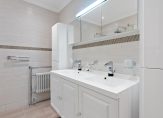 The spacious master bedroom is located at the front of the flat. This very spacious bedroom is equipped with a large walk-in wardrobe and its own kitchen. This kitchen is also fully equipped with a fridge, combi-oven, built-in gas hob, extractor, etc. Ideal for a live-in child, an au-pair or for an early cup of coffee/breakfast in bed.