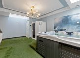 De twee overige goed bemeten slaapkamers zijn aan de achterzijde van de woning gelegen. Vanuit beide slaapkamers bereikt u de welnessruimte. Deze voormalige- en goed overdekte binnentuin biedt u een oase van ontspanning. U kunt hier eindeloos genieten van de fraaie sauna met infraroodfunctie en/of van de schitterende verwarmde jaccuzi. Aan werkelijk alles is hier gedacht om de ultieme ontspanning te kunnen ervaren, denk aan een handdouche voor de jaccuzi, goede verwarming, elektrisch bedienbare ramen voor ventilatie en een grote TV-hoek. In een afzonderlijke kast is de aansluiting voor de wasmachine en droger.