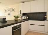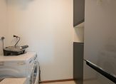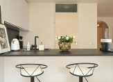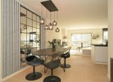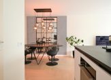 Ruime hal met meterkast en modern toilet met fontein, zeer ruime en lichte woonkamer met nieuwe luxe open keuken voorzien van inbouwapparatuur en eetbar, naast de keuken bevindt zich een ruime bijkeuken met de CV-ketel en de mechanische ventilatie-unit, opstelplaats voor wasmachine en droger en voldoende bergruimte.