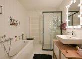 Aan de andere zijde van de hal bevinden zich 2 ruime slaapkamers die beiden toegang geven tot het balkon met middag- en avondzon. De badkamer beschikt over een ligbad, aparte douche, toilet en wastafel.