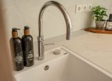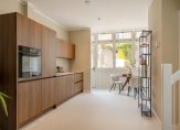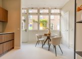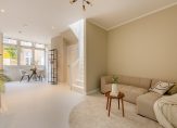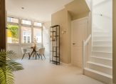 Entree van de woning via nieuwe pui met groot glasoppervlak, charmante woonkamer met aan beide zijde lichtinval, gietvloer met vloerverwarming en luxe open keuken voorzien van walnootlook kasten, hardstenen werkblad, Quooker, hoog model Siemens bakoven, vaatwasser, koel-/vriescombinatie en inductiekookplaat met geïntegreerde afzuiging. Verder op de begane grond een hal met aparte technische ruimte en toilet voorzien van fraai tegelwerk, wandcloset en fonteintje.