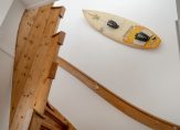 At the rear, a large sliding door leads to the southwest-facing balcony, ideal for catching the afternoon and evening sun. Additional storage space is also available on the balcony. The living space enjoys open views both front and back, and is large enough for a full dining area, lounge, and home office setup.