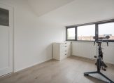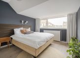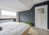 To the rear is the spacious master bedroom with a wall-to-wall sliding-door wardrobe, dormer window (with uPVC frame and double glazing), and a view of the iconic Scheveningen lighthouse.
