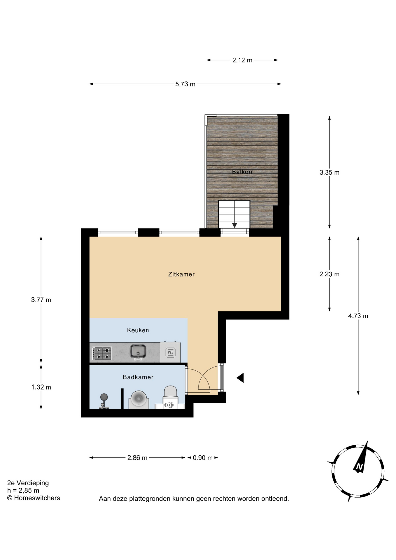 Gezamenlijke entree, trap naar de tweede etage, entree appartement, rustig gelegen woonkamer aan de achterzijde van complex, grote raampartijen met dubbel glas, moderne open keuken voorzien van gaskookplaat, wasemkap, gootsteen en koelkast. Vanuit de woonkamer de fraai betegelde badkamer voorzien van badkamermeubel met wastafel, wandcloset, handdoekradiator en inloopdouche. Aan de achterzijde een leuk zonneterras van ca. 7 m² gelegen op de middag- en avondzon.