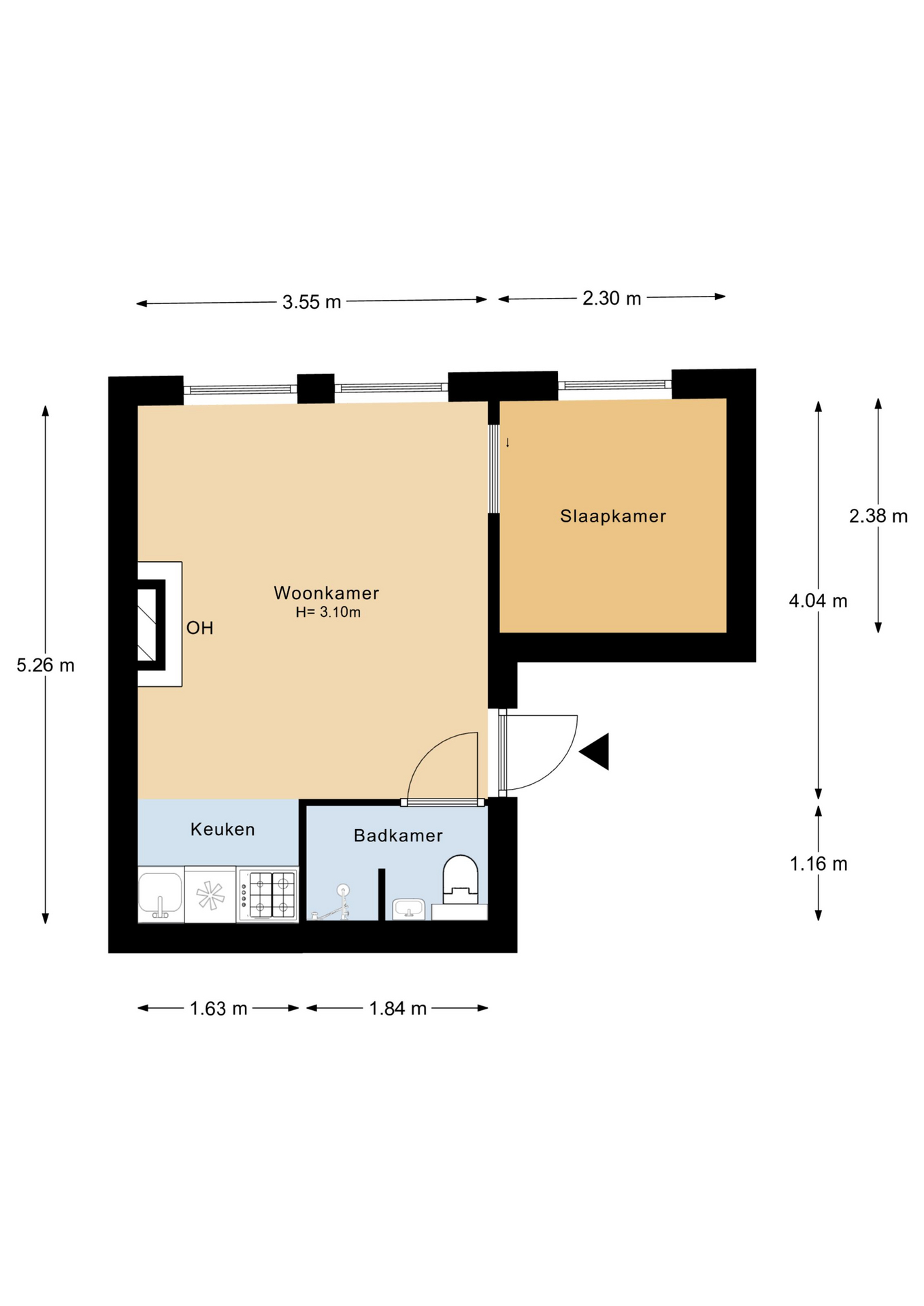 – Woonoppervlak ca. 24 m²