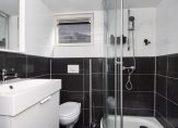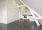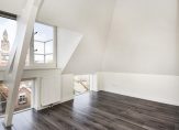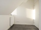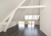 Gezamenlijke entree, trap naar de derde etage, entree appartement, woonkamer met spectaculaire nokhoogte van ca. 3,51m en dakkapel met uitzicht over de toren van het Vredespaleis, de lichtinval is uitstekend te noemen dankzij diverse daklichten. De open keuken in hoekopstelling is voorzien van composiet werkblad, combioven, inductiekookplaat en vaatwasser. Aan de voorzijde twee ruime slaapkamers met eveneens hoog plafond en tussengelegen badkamer voorzien van douchecabine, toilet en meubel met wastafel.