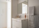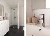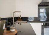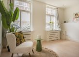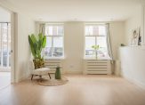 Gezamenlijke entree van gebouw, entree appartement, woonkamer met spectaculaire lichtinval dankzij grote raampartijen aan de voorzijde. De open keuken is voorzien van inductiekookplaat, koel-/vriescombinatie, combioven en vaatwasser. Aan de voorzijde de ruime slaapkamer wederom met zeer gunstige lichtinval dankzij ramen rondom en een ruime tussengelegen kamer met indirecte lichtinval. De moderne badkamer is voorzien van fraai tegelwerk, meubel met wastafel, handdoekradiator en inloopdouche met glazen deur.