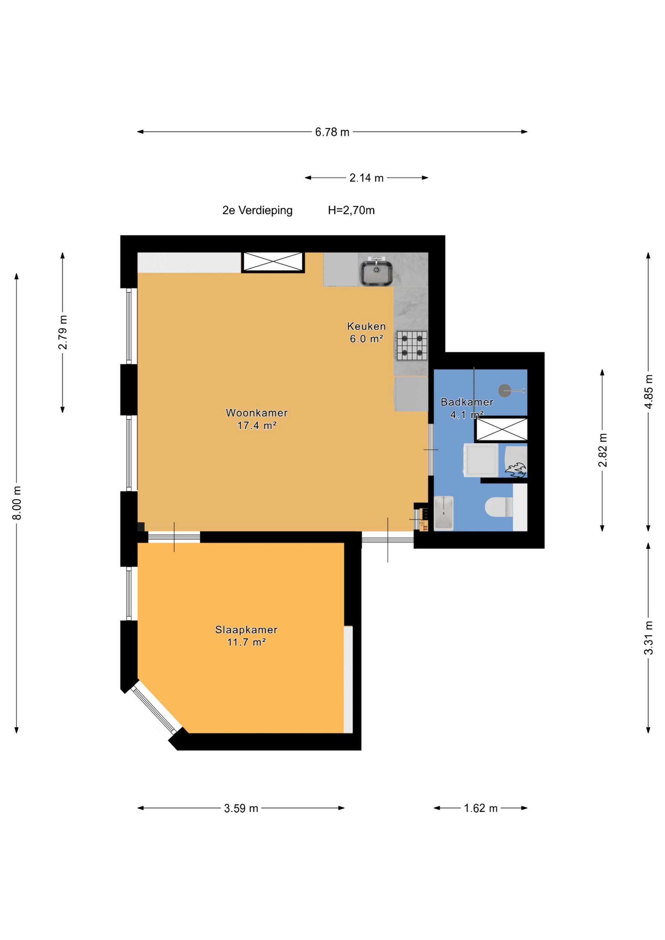 Gezamenlijke entree van gebouw, trap naar de tweede etage, de woning is zeer fraai gelegen op de hoek met de Van de Spiegelstraat in een voormalig herenhuis, entree appartement, woonkamer met spectaculaire lichtinval dankzij grote raampartijen aan de voorzijde. De open keuken is voorzien van inductiekookplaat, koel-/vriescombinatie, combioven en vaatwasser. Op de hoek de ruime slaapkamer met wederom zeer gunstige lichtinval dankzij grote raampartij en moderne badkamer met fraai tegelwerk, badkamermeubel, handdoekradiator en inloopdouche.