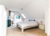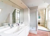 Aan de achterzijde de hoofdslaapkamer van bijna 30 m² met eigen balkon, airconditioning en badkamer voorzien van hoekbad, douchecabine, toilet (sanibroyeur), dubbele wastafel en handdoekradiator. Aan de achterzijde de tweede ruime slaapkamer eveneens met eigen balkon, derde ruime slaapkamer en tussengelegen badkamer voorzien van douche en meubel met wastafel.