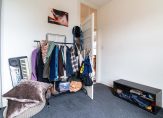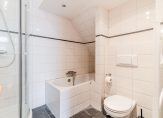 Entree in open portiek, entree appartement, hal met meterkast tevens voorzien van opstelplaats wasmachine, de ruime kamers en suite, door de hoekligging met de extra ramen heerlijk licht, heeft een erker, 3 vaste kasten, een zwart marmeren schoorsteenmantel en aan de achterzijde een schuifpui naar het balkon. Ruime halfopen keuken voorzien van inbouwapparatuur en nette badkamer voorzien van toilet, wastafel, ligbad en douchecabine. Tenslotte heeft het appartement 2 ruime slaapkamers, één aan de achterzijde met een inbouwkast en één aan de voorzijde met een kastenwand.