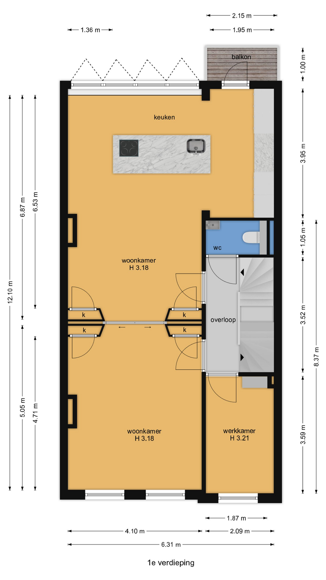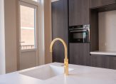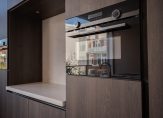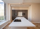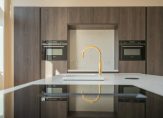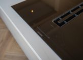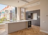 Aan de achterzijde de eyecatcher van dit schitterende pand: een harmonicapui met glazen doorvalbeveiliging die perfect op de middag-/avondzon is gelegen. Ideaal om als zitgedeelte te gebruiken als aanvulling op de woonkeuken. De open keuken beschikt over een kookeiland voorzien van composiet werkblad, wijnklimaatkast, inductiekookplaat met geïntegreerde afzuiging, goudkleurige Quooker en vaatwasser. Het wandgedeelte is voorzien van Siemens combiovens, inbouwkoelkast, inbouwvriezer en nis met composiet werkblad. In de hoek nog een openslaande deur naar klein achterbalkon.