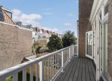 Aan de achterzijde de ruime hoofdslaapkamer met openslaande deuren naar tweede riante terras over de volle breedte van de woning. Aan de voorzijde nog zo’n goed formaat slaapkamer met uitzicht over het Koningsplein. Deze etage beschikt nog over twee zijkamers die gebruikt kunnen worden als slaap-, werk- of logeerkamer. De tussengelegen luxe badkamer beschikt over fraai tegelwerk, vrijstaand ligbad, daklicht, inloopdouche met glazen wand en meubel met dubbele waskom.