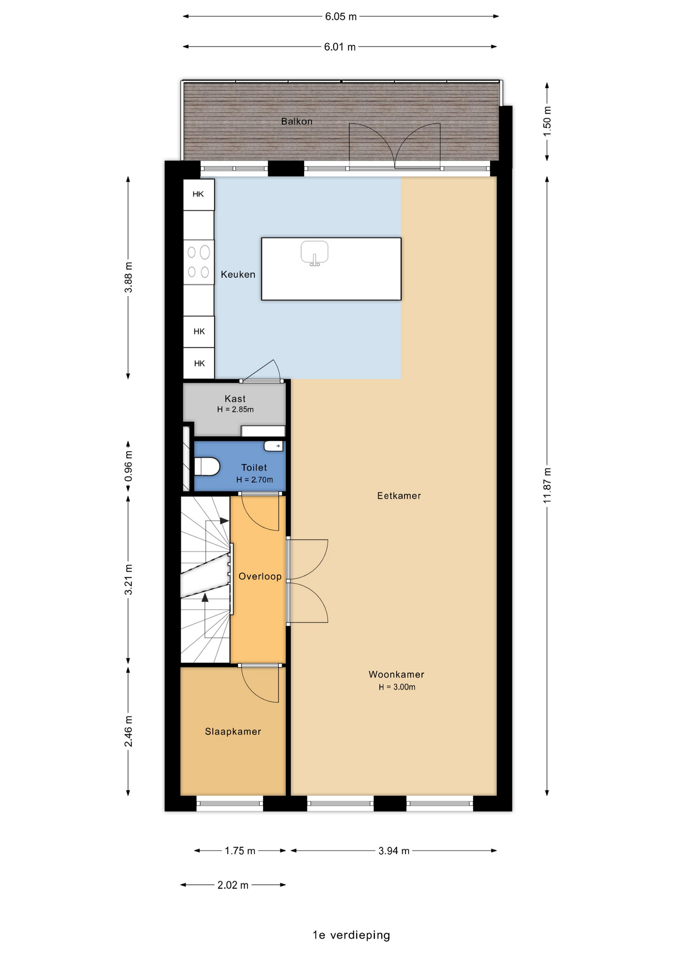 Vanuit de hal de trap naar de 2e etage, overloop met apart toilet en groot daklicht. De huidige eigenaar heeft een onherroepelijke omgevingsvergunning van de gemeente Den Haag voor de aanleg van een dakterras. Dit is tevens notarieel vastgelegd in de akte van splitsing. Indien gewenst kan een koper voor eigen rekening een vaste trap plaatsen en een dakterras aanleggen. Het huidige daklicht is te openen en zodanig geplaatst dat koper dat relatief eenvoudig een dakterras kan realiseren.
