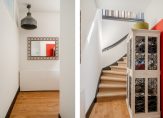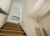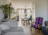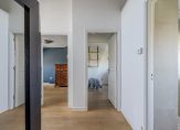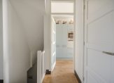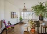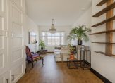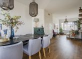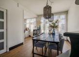 Open portiek met trap naar de eerste etage, entree appartement, ruime entree met meterkast, trap naar de tweede etage, riante hal met toilet voorzien van wandcloset en fonteintje. Vanuit de woonkamer voormalig en suite met vaste kasten en achterbalkon over de volle breedte. Het vrije uitzicht en de lichtinval vanuit het zuidwesten is ronduit spectaculair te noemen en biedt bovendien volledige privacy.
