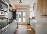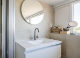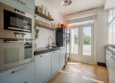 De half open keuken is voorzien van hardstenen werkblad, 5-pits gaskookplaat, hoog model bakoven, inbouwmagnetron, apothekerskast, vaatwasser en rvs afzuigkap. Aan de voorzijde de eerste riante slaapkamer met eveneens prachtig uitzicht aan de voorzijde.