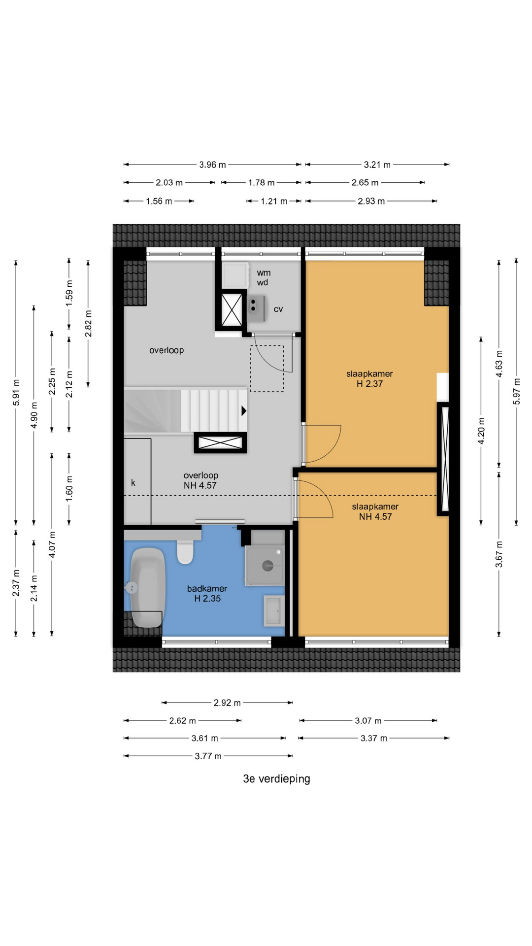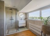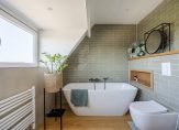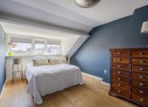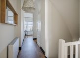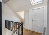 Vanuit de hal de trap naar de derde etage, brede overloop waar eventueel nog een extra slaapkamer valt te realiseren, technische ruimte met opstelplaats voor cv-ketel en wasmachine, tweede riante slaapkamer aan de voorzijde met dakkapel, derde slaapkamer eveneens goed van formaat met dakkapel en schitterende badkamer met daglichttoetreding, dakkapel, half vrijstaand ligbad, fraai tegelwerk, inloopdouche en meubel met wastafel.