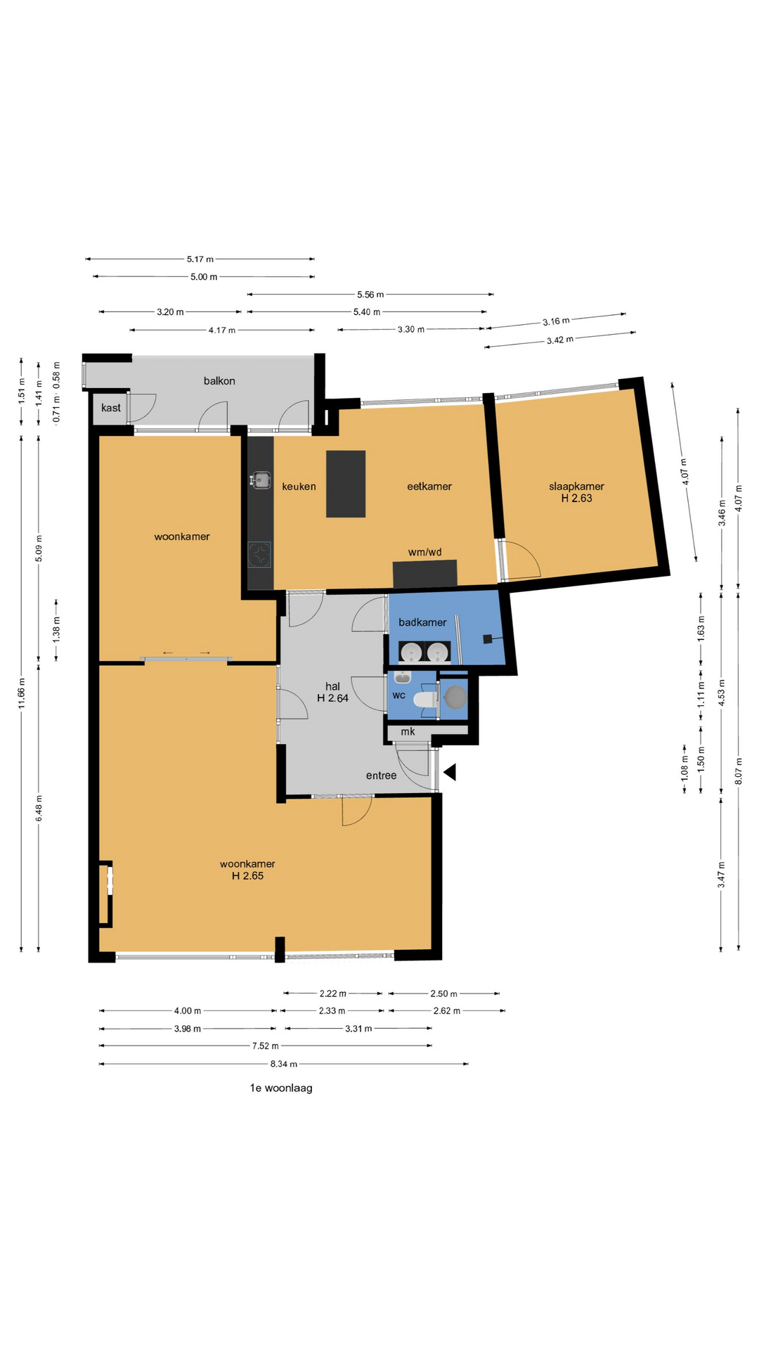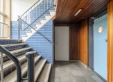 Gesloten centrale entree met brievenbussen- en bellentableau evenals een videofooninstallatie. Op de begane grond bevindt zicht de toegang naar de privé berging met een oppervlak van ca. 5 m². Het appartement op de 1e etage is bereikbaar via het trappenhuis of de lift.